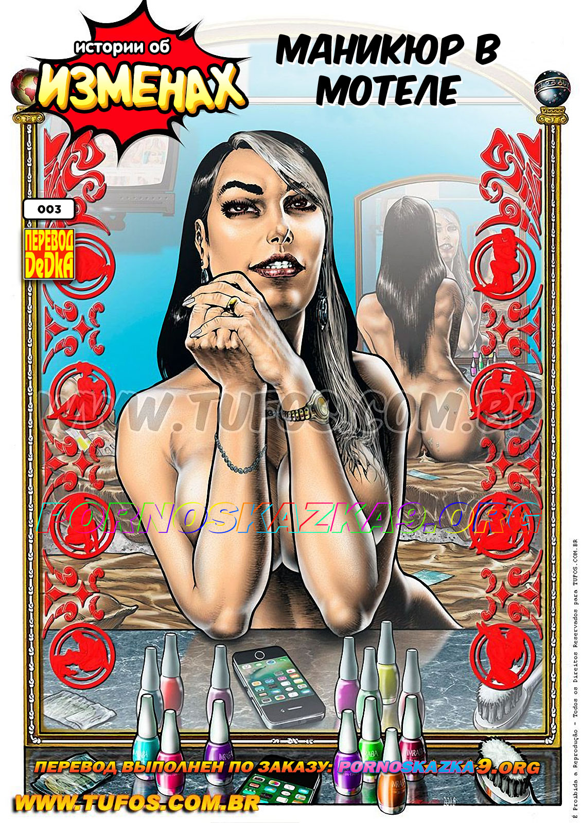 Порно комикс «Альфа. Часть 6.» После оргии в доме Рании, Иван с Миной приехали к нему домой, где уставший Иван сказал Мине, что она может не беспокоиться о нем и ей лучше отправиться домой. Мина ушла, а поздно ночью выяснилось, что беспокоиться все-таки было о чем. В спальню спящего Ивана проникла Деви, с целью обездвижить его с помощь укола и снять с него волшебное кольцо…